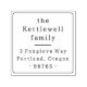 A simple return address stamp with your family name and address in classic serif typography. There is a square frame around the text with curved corners. There is a horizontal line divider between the two sections of text. Visit our store for more return address rubber stamps.