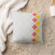 Cute and fun Square Geometric Pattern throw pillow with grey, freesia and cayenne colors.