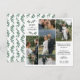 Square photo collage thank you wedding card to say thank you and wish your wedding guests merry Christmas. Add five of your own wonderful wedding photos and a personal thank you message and wishes for the holidays and new year. Add your names as well above a hand-drawn illustration of a mistletoe twig. Christmas themed wedding thank you card with mistletoe twigs.