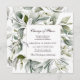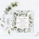 This card features lush watercolor greenery leaves and elegant twigs on the white background and elegant golden frame and text change of plans.
