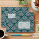 Jazz up your home office and craft centers with our bold art deco repeat pattern in teal and gray. Our geometric Square Leaf Pattern Teal Neutral will add a touch of sophistication and flair to any room.