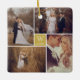 Simple minimalist line white grid with a center colored square in gold featuring the couple's monogram and the wedding year. Modern 4 photo collage christmas ornament for the newlywed or married couple.
