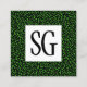 A square business card template with initials placed inside a square panel. This version also has a background image. The initials are in the Integrity bold font. Name and profession/job title along with telephone, email and website address in black on the reverse side on a white background, using variations of the Matt Antique font.