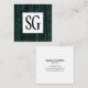 A square business card template with initials placed inside a square panel. This version also has a background image. The initials are in the Integrity bold font. Name and profession/job title along with telephone, email and website address in black on the reverse side on a white background, using variations of the Matt Antique font.