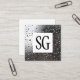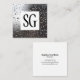 A square business card template with initials placed inside a square panel. This version also has a background image. The initials are in the Integrity bold font. Name and profession/job title along with telephone, email and website address in black on the reverse side on a white background, using variations of the Matt Antique font.