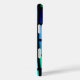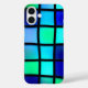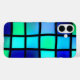 This phone case has a blue square pattern pictured on it.