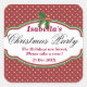 Square Polka Dot Pattern Christmas Stickers. Great for christmas party tables! Design features a festive red and white dotty background with a green and red bordered tag and sprig of holly and berries! Wording, text color and style can be changed in the 'Customize' Menu. .