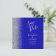 Square Royal Blue Silver Glitter Save the Date Announcement