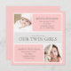 Twin baby girl birth announcement collage features two spots for photos of your new bundles alongside their birth details. Add your name to the back or delete and leave blank.