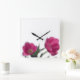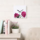 This is a square wall clock decorated with a photograph of beautiful pink tulips.