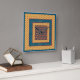 A chic, square Wall Clock with a mix'n'match pattern of gold-coloured horses on a deep red background, teamed with coordinating Polka Dot patterns. The horse motif was painted by hand by Judy Adamson.