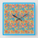 Square Wall Clock, Orange Flowers, Blue Border Square Wall Clock