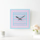 A pretty, square Wall Clock, with a pattern of Candy Pink, Lavender, Turquoise and White chevrons.