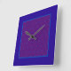 A pretty, square Wall Clock with a pattern of traditional ogee shapes in shades of purple and blue and a deep blue border.