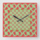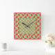 Square Wall Clock: Red Dragons on Green Gingham Clock