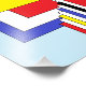 This geometric abstract artwork by Richard H. Fay features an array of squares in the primary colors of red, blue, and yellow, as well as black and white.