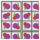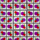 Brightly colored circles stand stacked inside black and gray square frames in this geometric abstract art by Richard H. Fay.