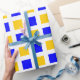 Squares - Blue and Amber on White Wrapping Paper