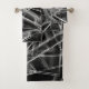 Squares corners in thick gray lines upon black bath towel set
