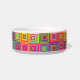 This is a heavy, durable bowl decorated with Tibbies of many colors, the perfect size for hungry/thirsty Tibs. The design is interesting and printing clear.