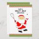 Funny squash sports Christmas holiday cards featuring cartoon Santa Claus and humorous quote.