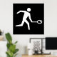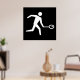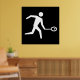 A squash player icon in white on a black background. This design looks really effective on these Poster