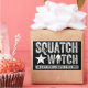 Grungy, distressed block style lettering tells everyone you are a star member of the squatch watch research team. Two bigfoot sasquatches are inside the letters, and a reverse color bar along the bottom highlights the quote "I do believe there's a squatch in these woods". Do YOU believe?