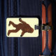 Original sasquatch on the front. Label on the back. Add your name, address and phone number. You can be sure that no one else on the plane will have this tag...unique!