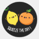 Squeeze The Day Positive Fruit Pun Dark BG Classic Round Sticker