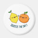 Squeeze The Day Positive Fruit Pun features a cute lemon and orange enjoying the day because they know they have to squeeze the day! Funny Pun gift for family and friends who love cute fruit puns.