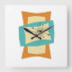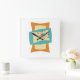 Squeezed Rectangles Orange Turquoise Cream Mid Mod Square Wall Clock