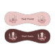 Pink squid chef cartoon with moustache holding knife and cooking fork. Custom background color. Custom text on both sides.