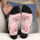 Pink squid chef cartoon with moustache holding knife and cooking fork. Seamless pattern. Custom background color. Custom top stripe color. Custom text on each sock.
