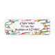 These return address labels have a mid-century modern design of squiggles running vertically in retro colors with black starbursts and circles scattered about the design.
