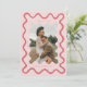Whimsical and quirky wedding thank you card featuring a hand drawn wavy line around your photo. Pink.