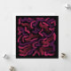 This unusual squiggly pinks on black art piece is an abstract digital graphic art design featuring a minimalist simplicity of five colors pink, magenta, purple, violet and black.