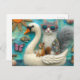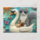 Squirrel and cat on Floating Woolen Swan Funny Postcard