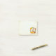 Post-it notes with a cute squirrel standing behind some orange watercolor pumpkins. A foliage wreath surrounds them with an oak leaf and orange flowers and other sprigs and leaves. Background is a cream color, with a rough aged vintage look around the edges.