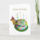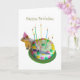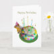 A squirrel wearing a party hat prepares to cut the birthday cake. Add you own words to make this birthday card even more special.