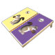 Natural Wood Cornhole Set, Yellow and Purple bags