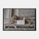 A doormat featuring a photo of two squirrels and the words "Nuts Welcome."