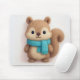 A cute squirrel wrapped snugly in a vibrant blue scarf. Its plush-like felt texture and whimsical design evoke a sense of warmth and friendliness