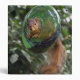How did this squirrel manage to plant himself in the middle of this glass bird feeder hanging from nowhere? For a handful of sunflower seeds, he would gladly tell you!