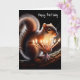 Cute squirrel perched on a branch holding a group of burning birthday candles.