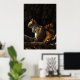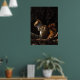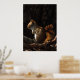 This poster features a moment out of time. A beautiful red squirrel is sitting on a branch in a patch of sunlight in front of the dark textured bark of a wild cherry tree.