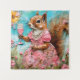 A funny squirrel with a pink dress and pearls holding a drink AI generated art