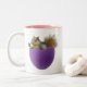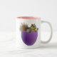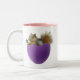 A squirrel sits in a purple eggshell holding a small blue flower. Sip your coffee from this Spring mug this Easter.