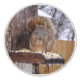A ceramic knob featuring a photo of a squirrel.