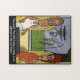 A puzzle with a funny cartoon about a squirrel trying to get into a bird feeder. Original artwork by DBcartoons.