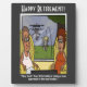A plaque with a funny cartoon about a squirrel trying to get into a bird feeder. Original artwork by DBcartoons.